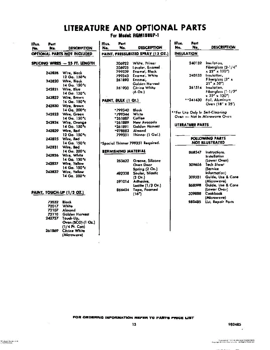 Parts for Whirlpool RGM1880P1: 13 - Lit / Optional Parts