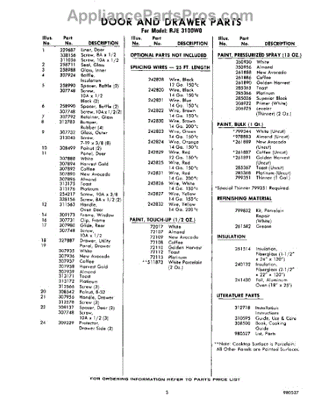 Parts for Whirlpool RJE3100W0: 03 - Lit / Optional Parts