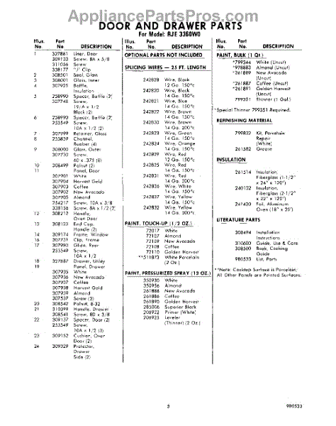 Parts for Whirlpool RJE3360W0: 03 - Lit / Optional Parts