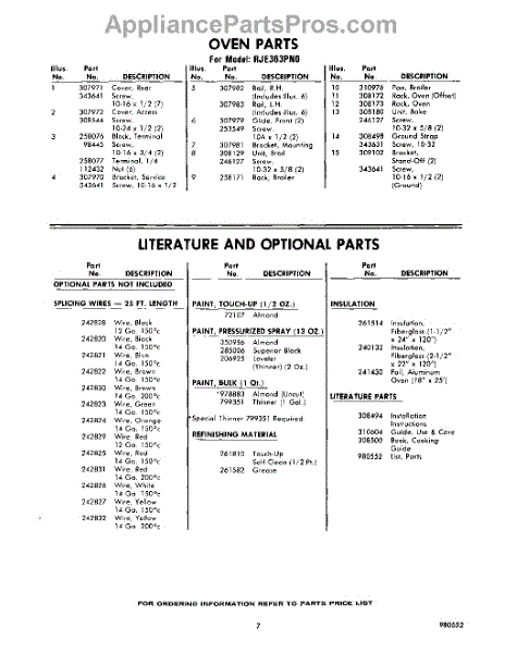 Parts for Whirlpool RJE363PN0: 07 - Lit / Optional Parts