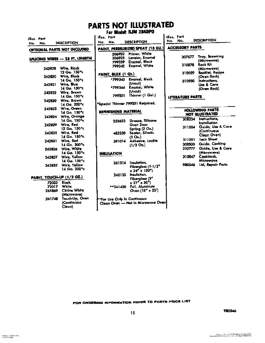 Parts for Whirlpool RJM2840P0: 15 - Lit / Optional Parts