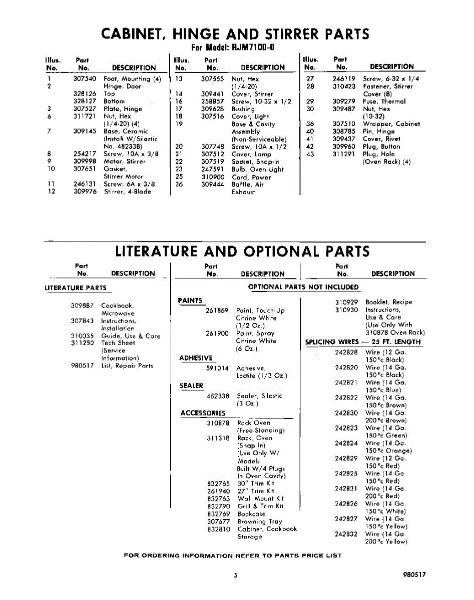 Parts for Whirlpool RJM71000: 05 - Lit / Optional Parts