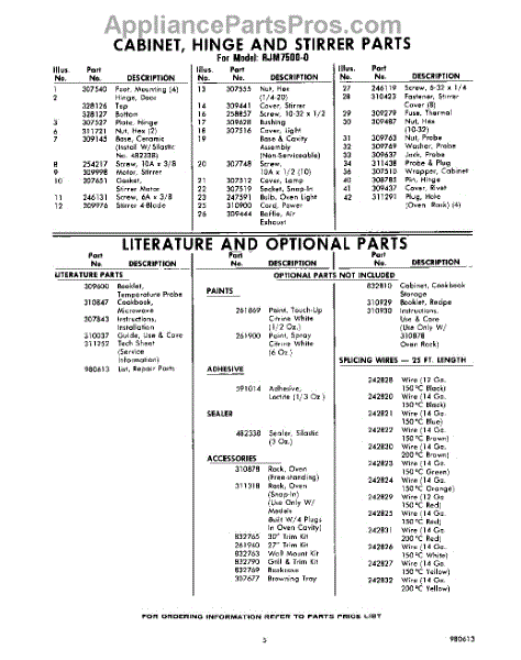 Parts for Whirlpool RJM75000: 05 - Lit / Optional Parts