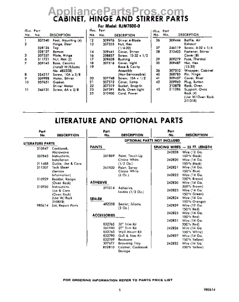 Parts for Whirlpool RJM76000: 05 - Lit / Optional Parts