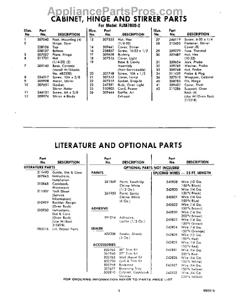 Parts for Whirlpool RJM78000: 05 - Lit / Optional Parts