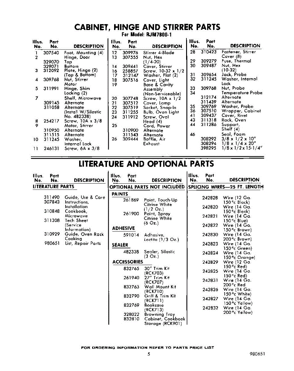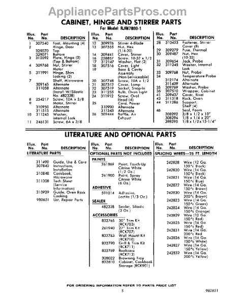 Parts for Whirlpool RJM78001: 05 - Lit / Optional Parts