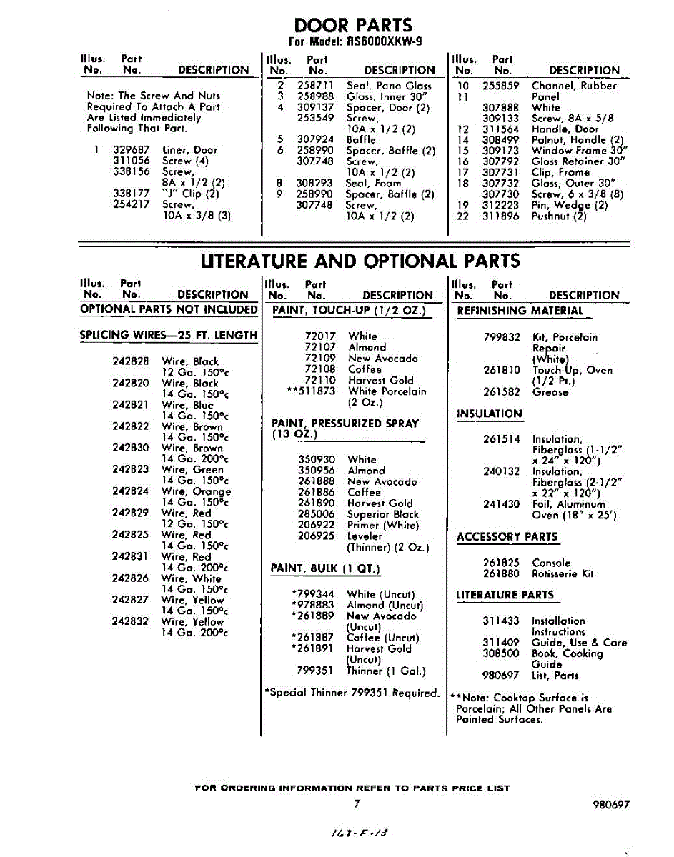 Parts for Whirlpool RS6000XKW9: 07 - Lit / Optional Parts