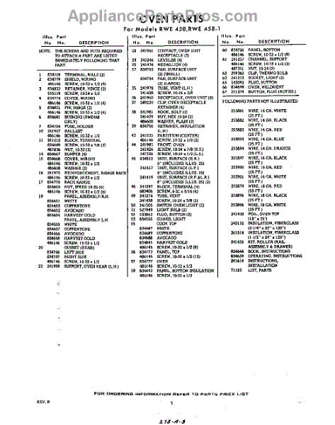 Parts for Whirlpool RWE458: 03 - Lit / Optional Parts