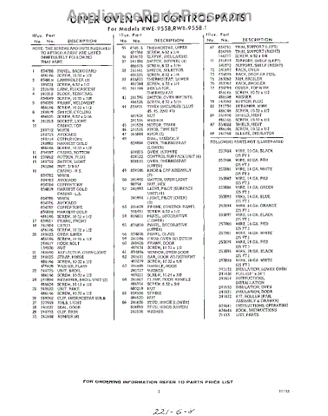 Parts for Whirlpool RWE95581: 03 - Lit / Optional Parts
