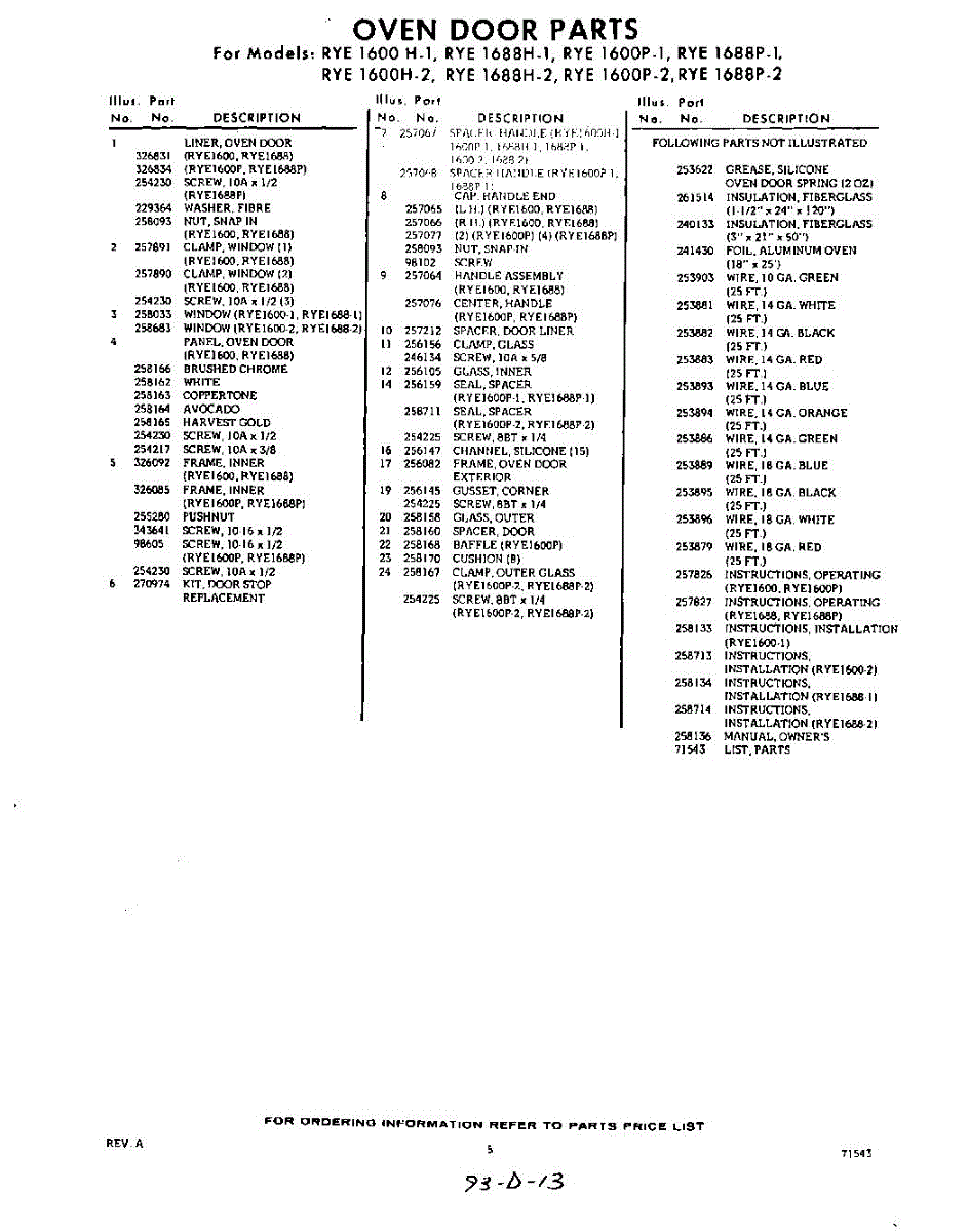 Parts for RYE1600W1