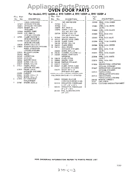 Parts for Whirlpool RYE1600W4: 05 - Lit / Optional Parts
