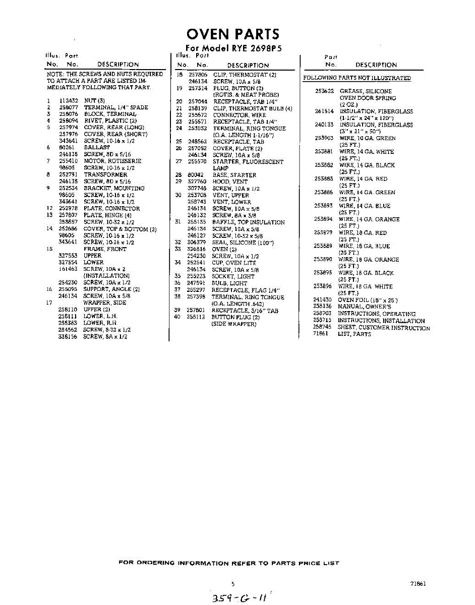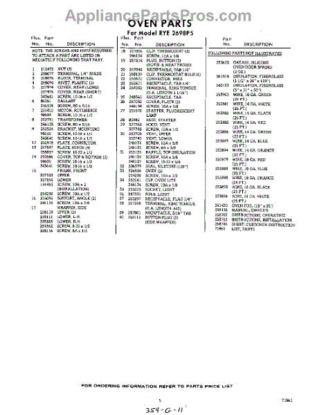 Parts for RYE2698P5