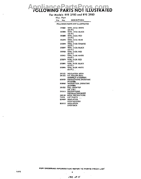 Parts for Whirlpool RYE3980: 04 - Lit / Optional Parts