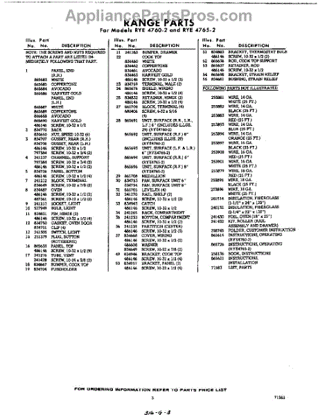 Parts for RYE47602