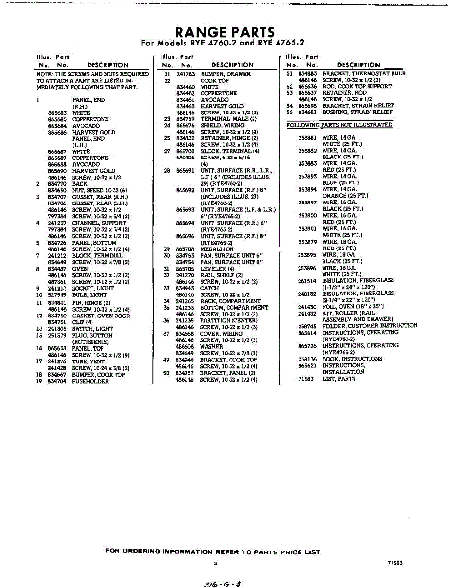 Parts for Whirlpool RYE47652: 03 - Lit / Optional Parts