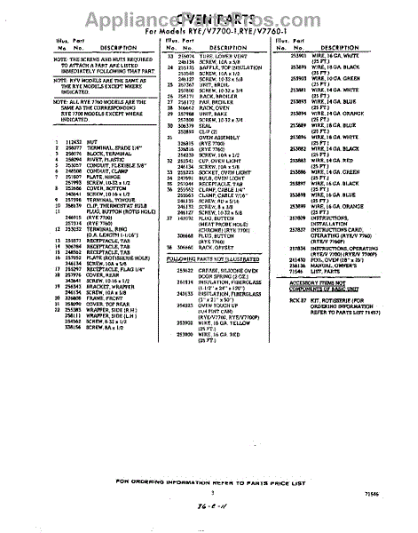 Parts for RYE7760W1