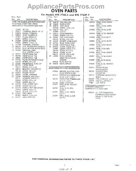 Parts for RYE7760W5