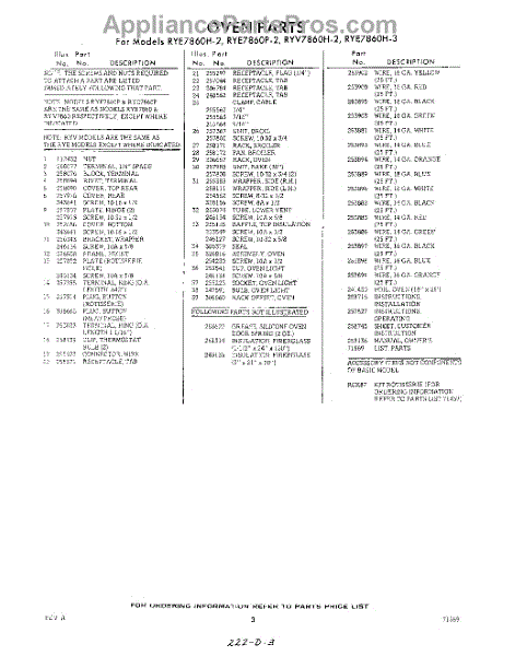 Parts for RYE7860W3