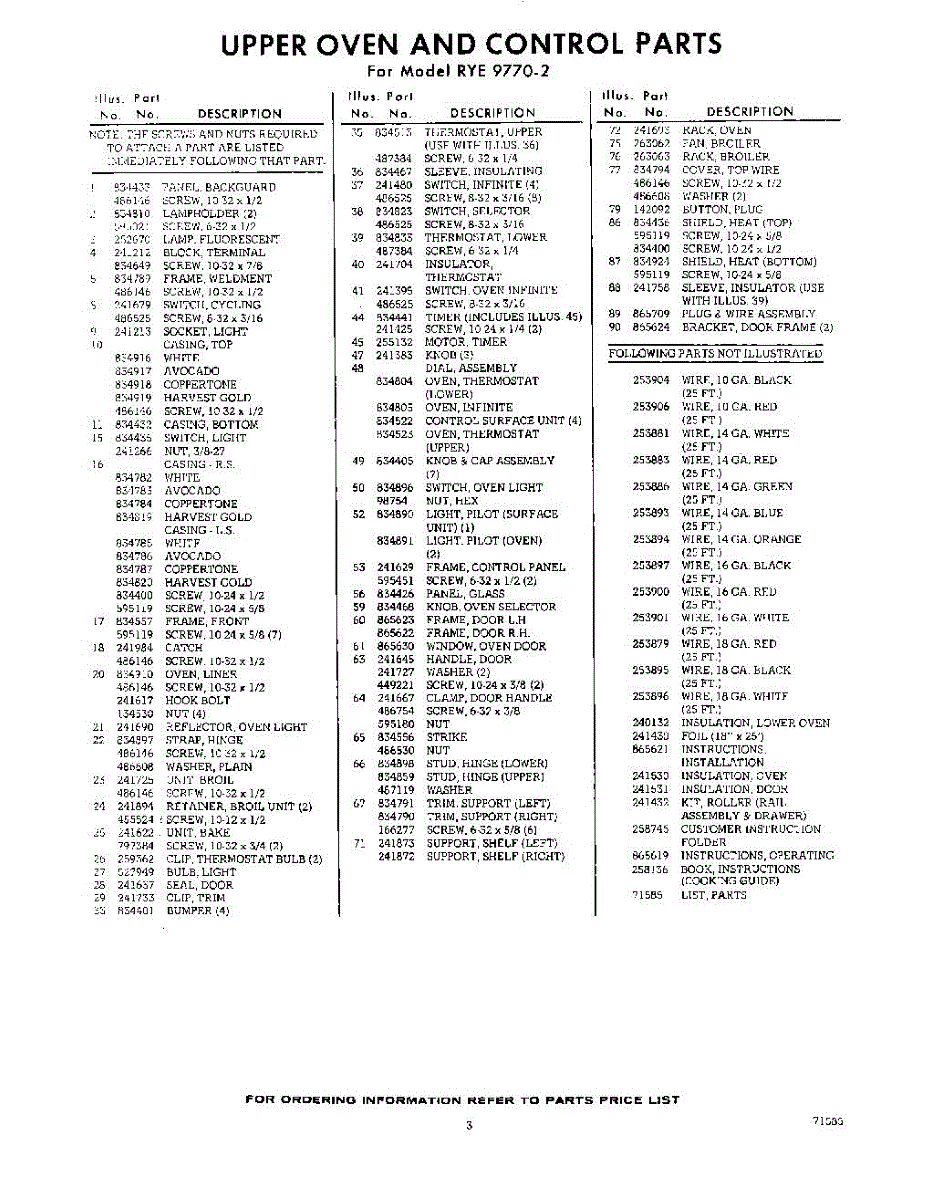 Parts for Whirlpool RYE97702: 03 - Lit / Optional Parts