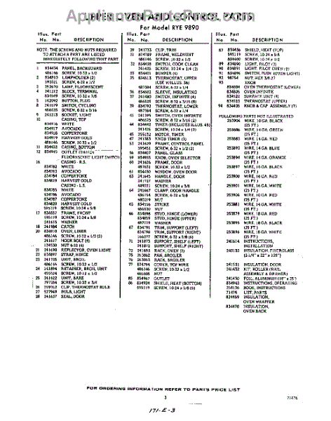 Parts for Whirlpool RYE9890: 03 - Lit / Optional Parts