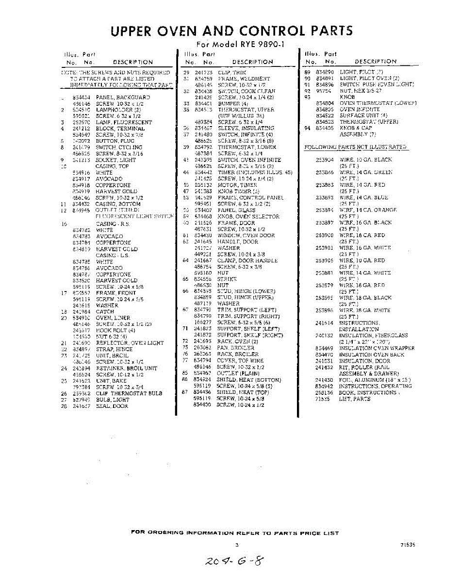 Parts for Whirlpool RYE98901: 03 - Lit / Optional Parts