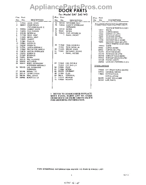 Parts for Whirlpool SAF340W0: 05 - Lit / Optional Parts