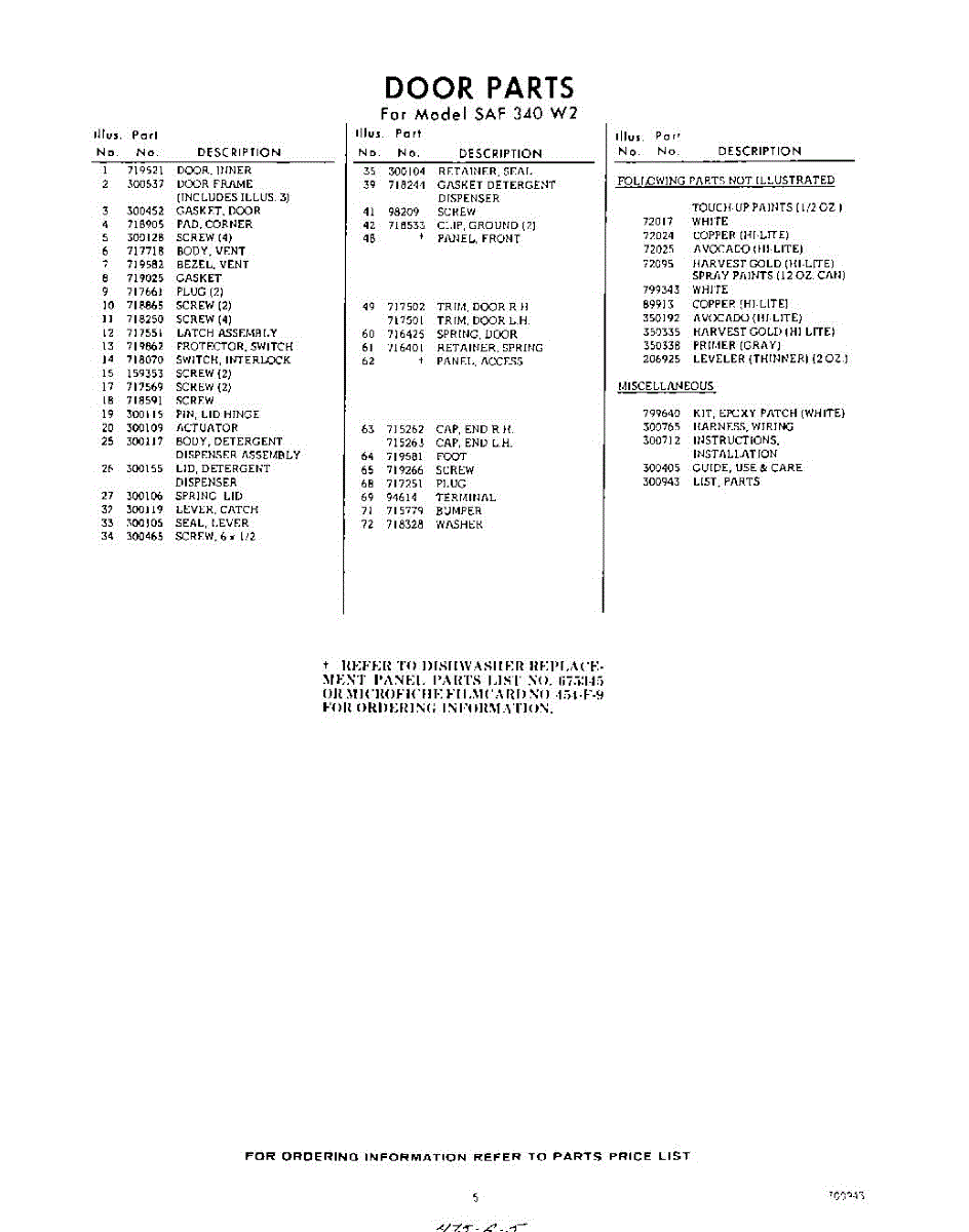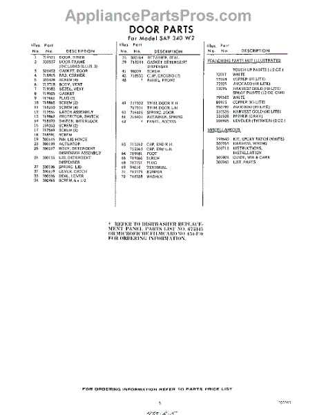 Parts for Whirlpool SAF340W2: 05 - Lit / Optional Parts