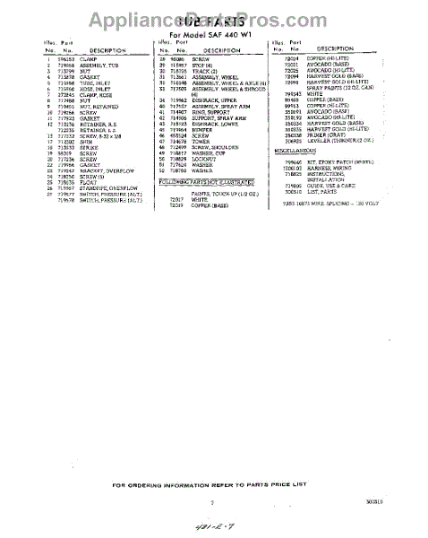 Parts for SAF440W1
