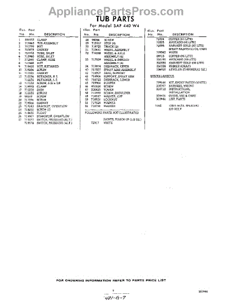 Parts for Whirlpool SAF440W4: 07 - Lit / Optional Parts