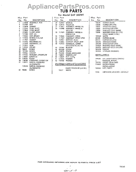 Parts for Whirlpool SAF500W1: 07 - Lit / Optional Parts