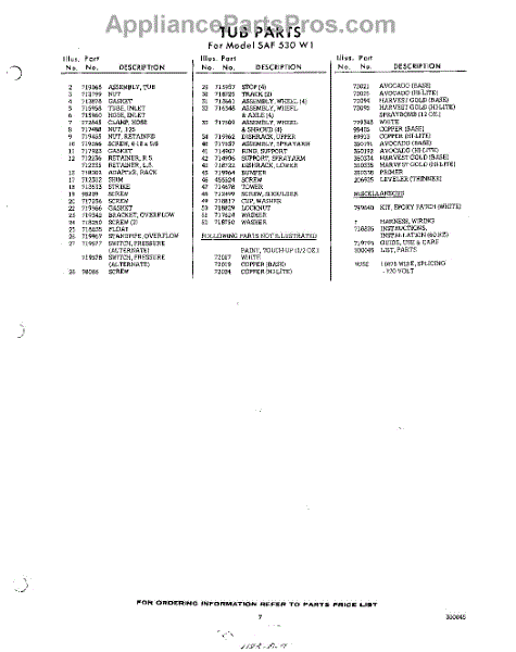 Parts for SAF530W1