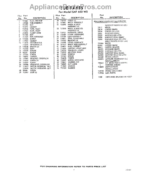 Parts for SAF600W0