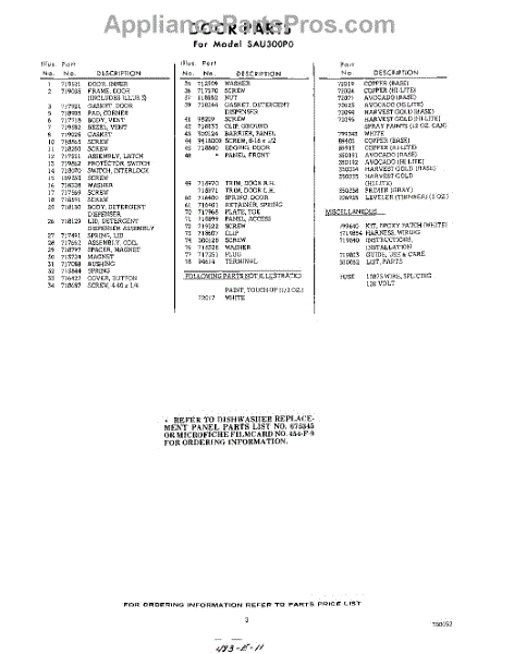 Parts for Whirlpool SAU300P0: 03 - Lit / Optional Parts