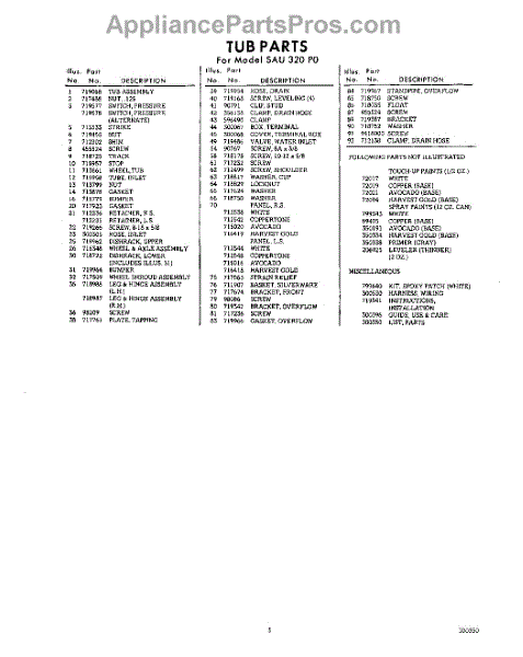 Parts for Whirlpool SAU320P0: 05 - Lit / Optional Parts