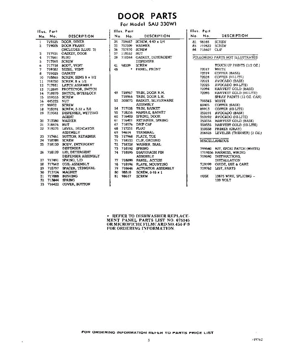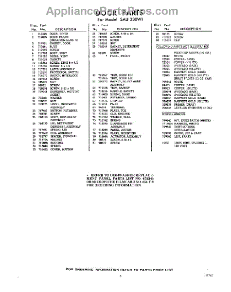 Parts for Whirlpool SAU330W1: 03 - Lit / Optional Parts