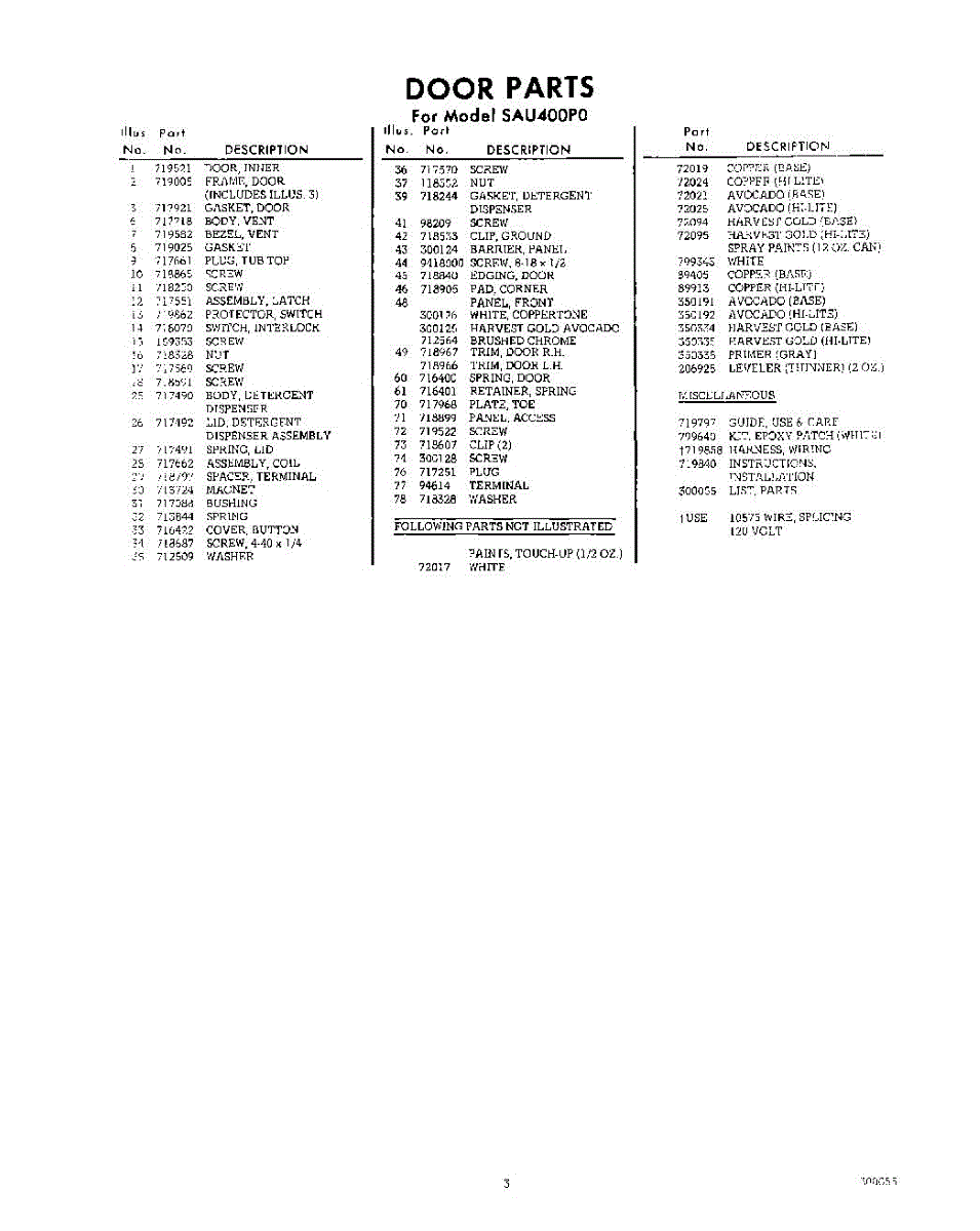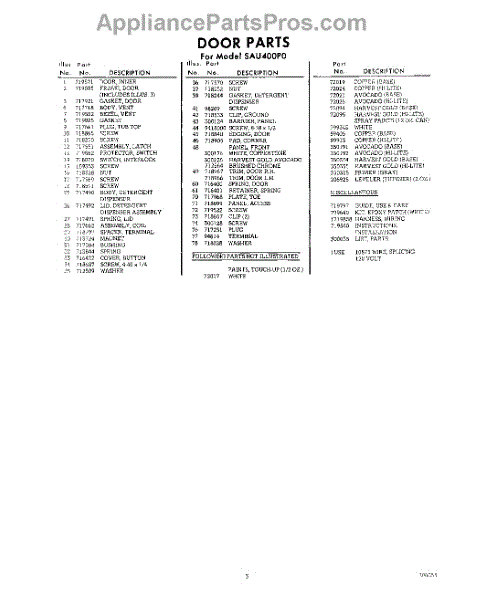 Parts for Whirlpool SAU400P0: 03 - Lit / Optional Parts