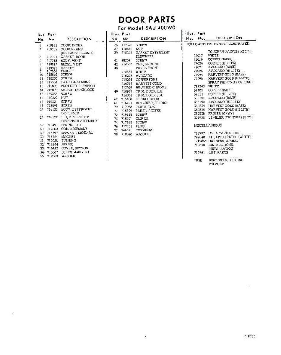 Parts for Whirlpool SAU400W0: 03 - Lit / Optional Parts
