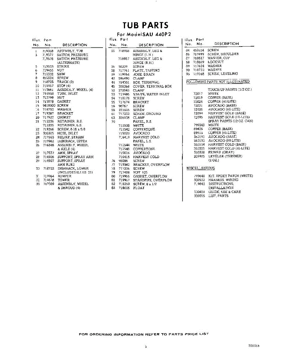 Parts for Whirlpool SAU440P2: 05 - Lit / Optional Parts