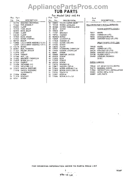 Parts for Whirlpool SAU440P4: 03 - Lit / Optional Parts