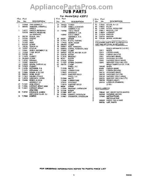 Parts for Whirlpool SAU450P2: 05 - Lit / Optional Parts