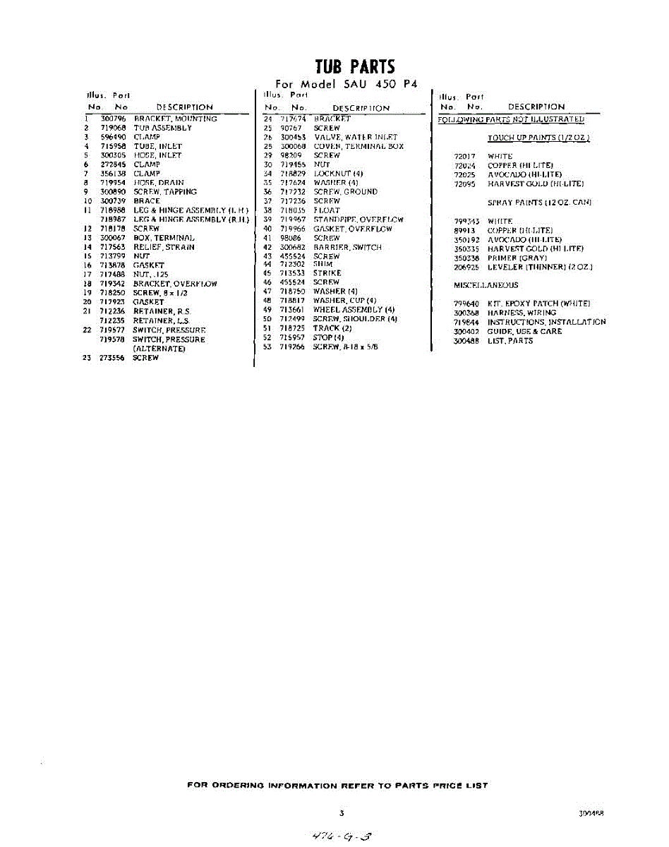 Parts for Whirlpool SAU450P4: 03 - Lit / Optional Parts