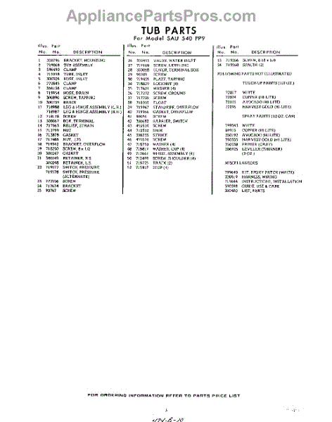 Parts for SAU540PP9