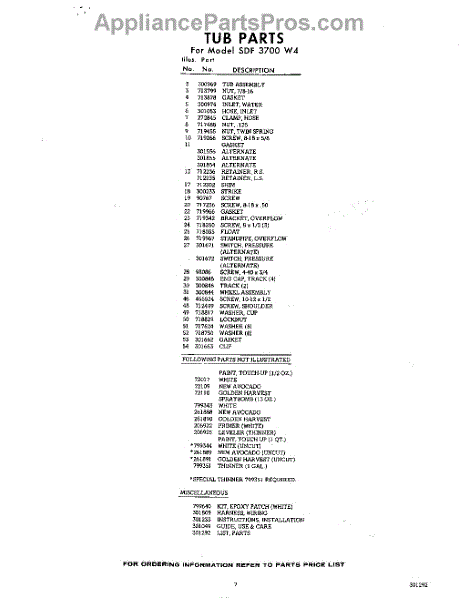 Parts for Whirlpool SDF3700W4: 07 - Lit / Optional Parts