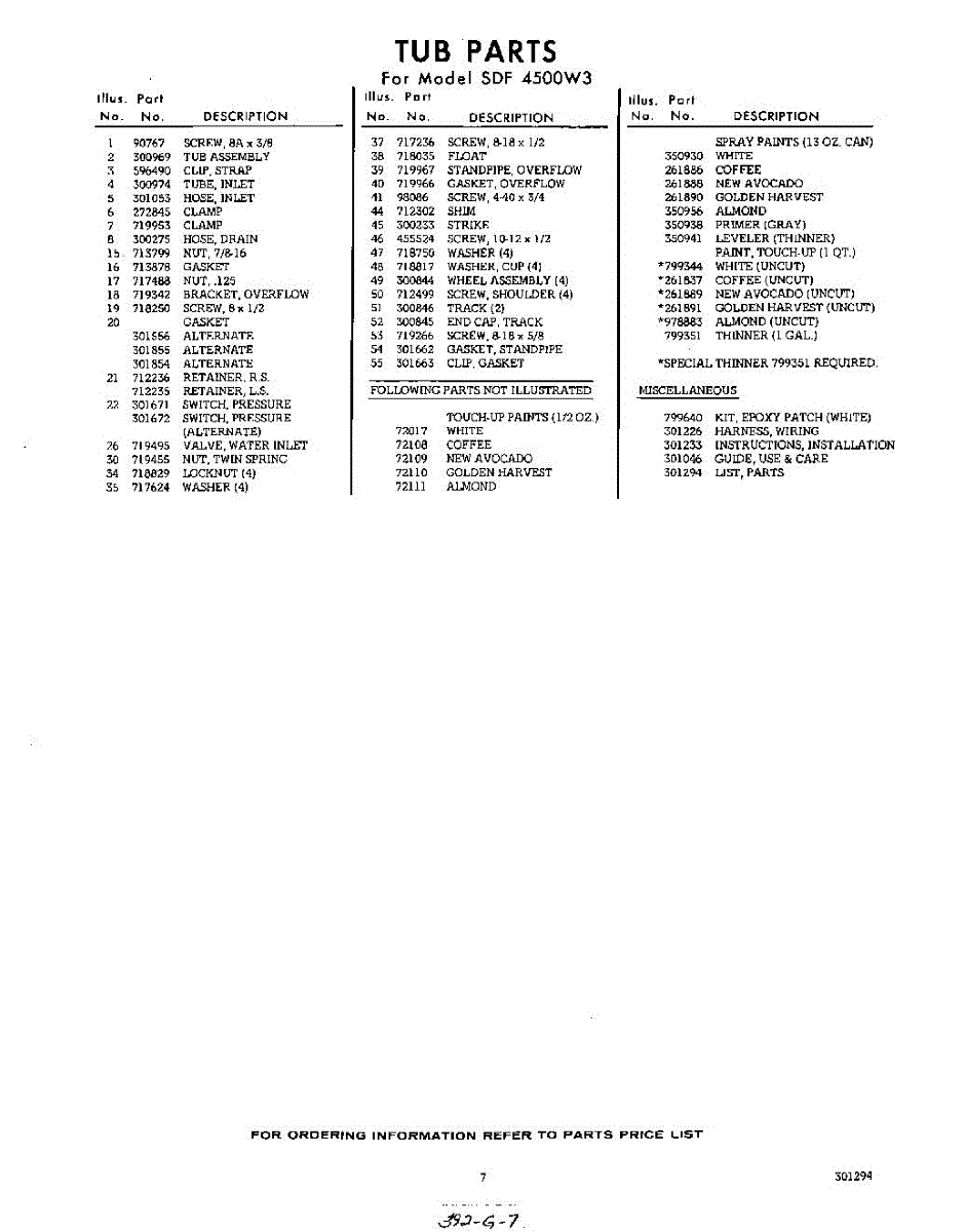 Parts for Whirlpool SDF4500W3: 07 - Lit / Optional Parts