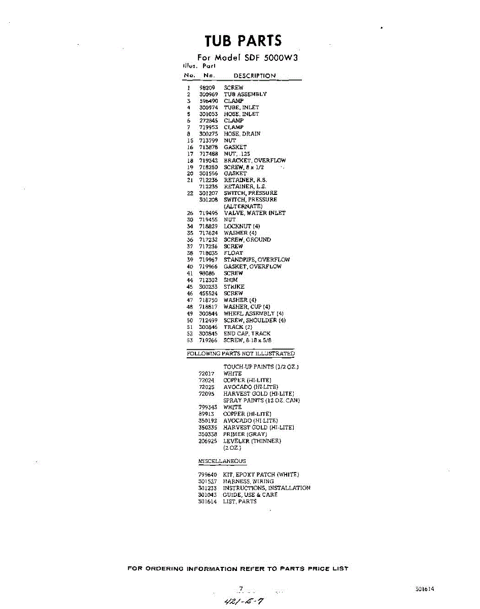 Parts for Whirlpool SDF5000W3: 07 - Lit / Optional Parts