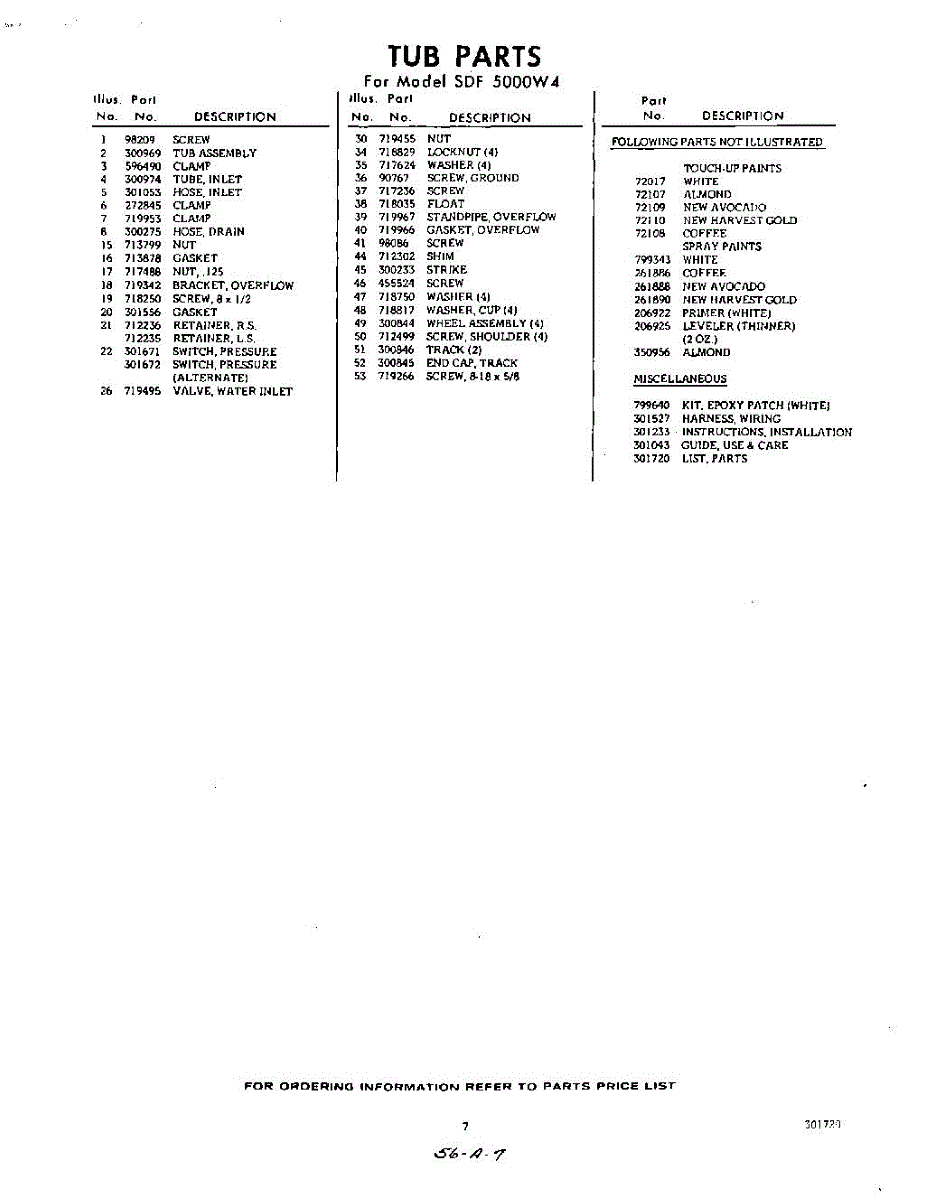 Parts for Whirlpool SDF5000W4: 07 - Lit / Optional Parts