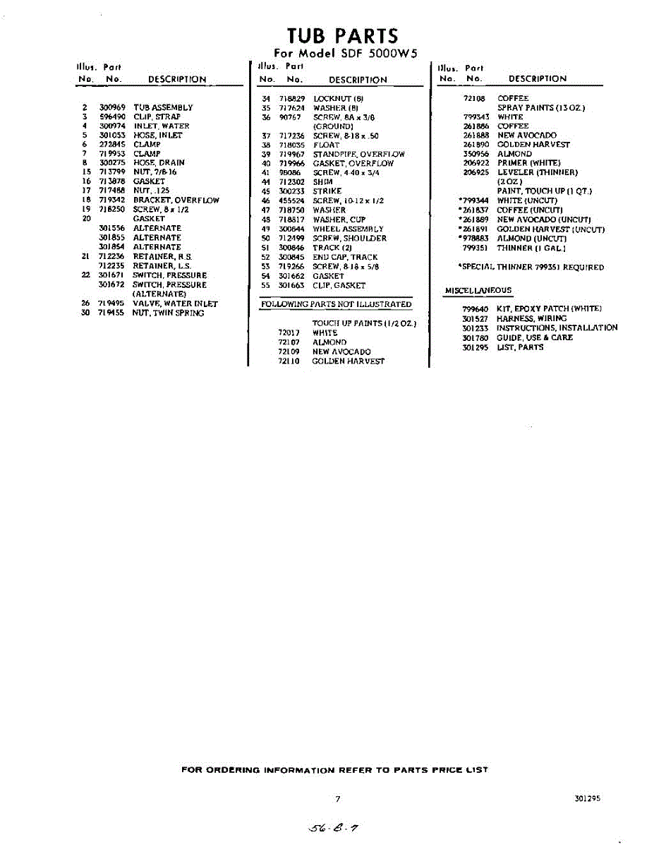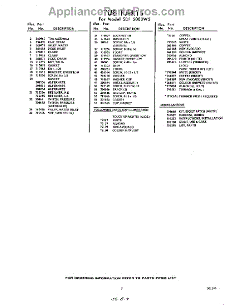 Parts for Whirlpool SDF5000W5: 07 - Lit / Optional Parts