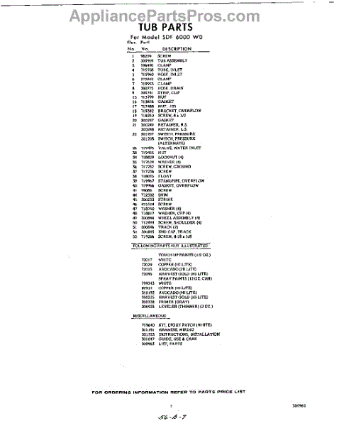 Parts for Whirlpool SDF6000W0: 07 - Lit / Optional Parts
