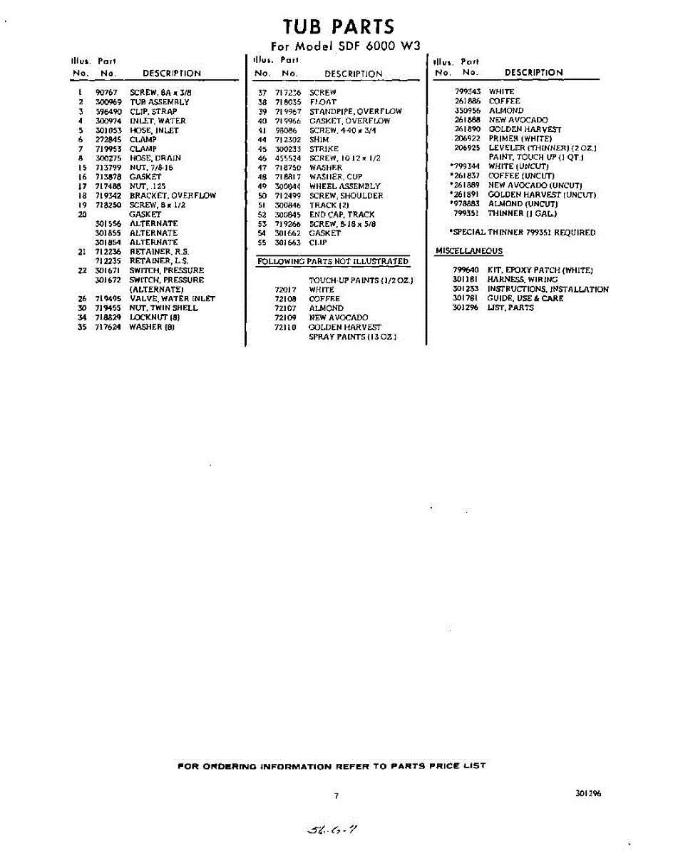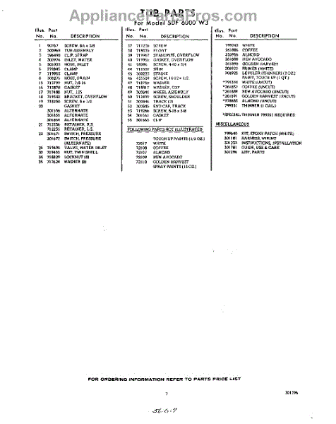 Parts for Whirlpool SDF6000W3: 07 - Lit / Optional Parts