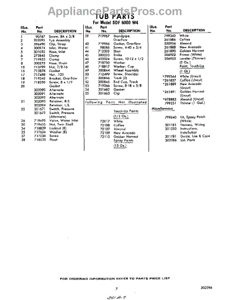 Parts for Whirlpool SDF6000W4: 07 - Lit / Optional Parts